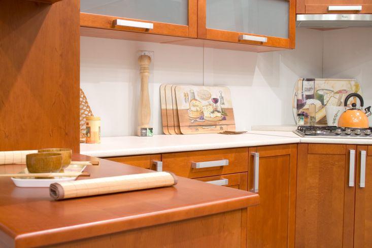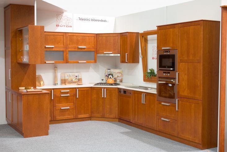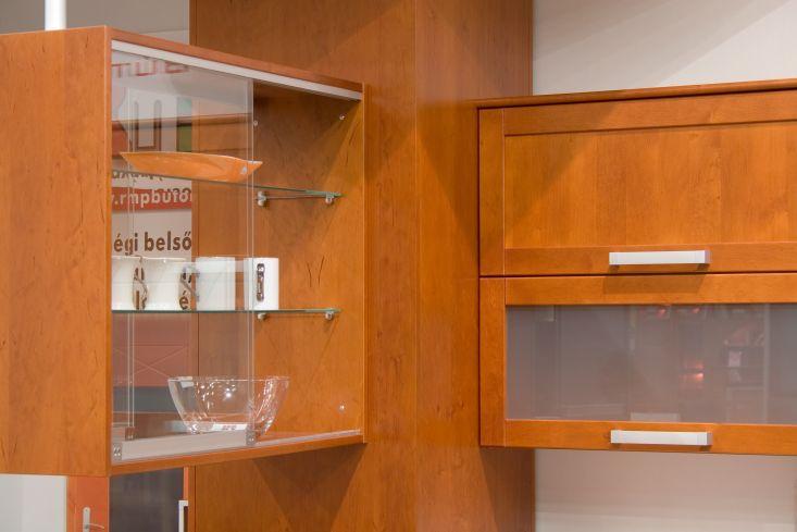 Modern konyhabútor éger tömörfa keretes profilú ajtókkal, éger furnérozott oldalakkal, beépíthető konyhai gépekkel.
